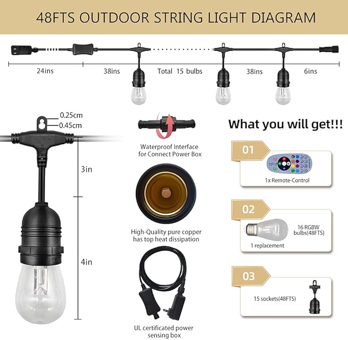 - SAFE LOW VOLTAGE: The patio light uses LED beads that release amazing brightness with only a low voltage of 12V, and 12V is far below the human safety voltage of 36V. We can proudly say. We have reached the highest level of product safety.