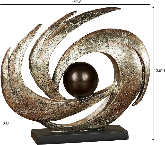Touch of Class Contemporary Earths Motion - Aged Gold - Table Sculpture Art Decor - Modern Abstract Aesthetic, Swirling Design, Orb Center - Made of Resin, 12 Inches High, 15 Inches Wide