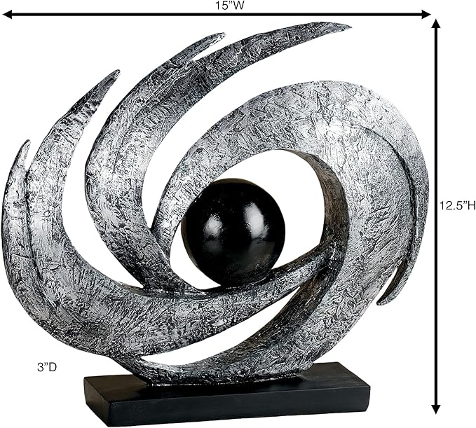- ๐ ASTONISHING CRAFTSMANSHIP ๐ - Created and curated for you, we've ensured the highest possible artisanship while remaining sensitive to the beauty of the experience itself. Set spinning by our galaxy's birth in the unknowable past, we depend on the Earth's Motion for our daily existence. The abstract, resin table sculpture is bold and dynamic, featuring antique silver swirls that seem to spin about a central black orb.