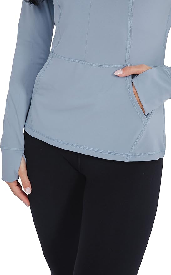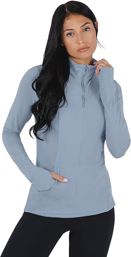 Yogalicious Half Zip Lightweight Workout Long Sleeve Athletic Jacket with Front Pockets and Thumbholes
