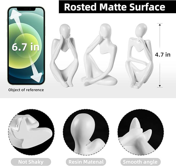 - 【SIZE】The dimensions of the unique Thinker abstract sculpture are 4.7" H x 3" W. Sculpture decor the size is just right, Just place it where you like, such as a bookshelf, Mantelpiece, TV cabinet, table, desk, coffee bar, entertainment center etc.