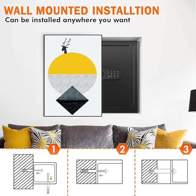 - INSTALL TO THE WALL/CLOSET/FLOOR: The compact dimensions of the safe make it easy to fit into any desired location within your home. Whether you choose to place it in a closet, under a desk, or securely mount it to a wall or floor, the safe seamlessly integrates into your living space without drawing unnecessary attention