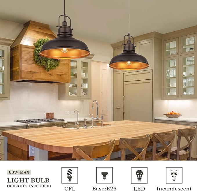 - 【INDUSTRIAL & MODERN DESIGN】: Featuring a metal dome shade with an industrial design in oil rubbed bronze finish, this kitchen pendant light is made of sturdy metal construction, perfectly meeting your farmhouse decoration expectations.