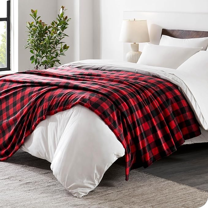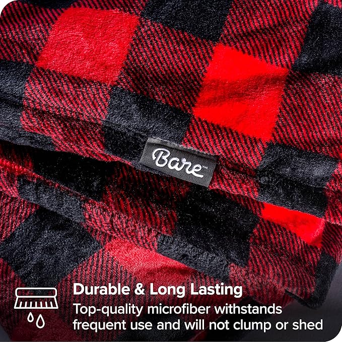 Bare Home Textured Fleece Blanket - Throw/Travel - Ultra-Soft Lightweight for Bed, Sofa, and Couch - Luxury Microplush - Cozy Warm Blanket (Throw/Travel, Buffalo Plaid - Red/Black)