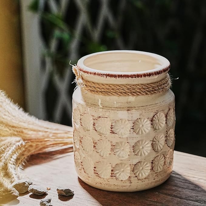 Ceramic Flower Vases for Home Decor Rustic Ideal Shelf Decor Table Décor, 6 Inch Ceramic White Vase for Flowers, Neutral Cream Vases for Mantel, Shelf, Living Room, Table Decoration, Beige