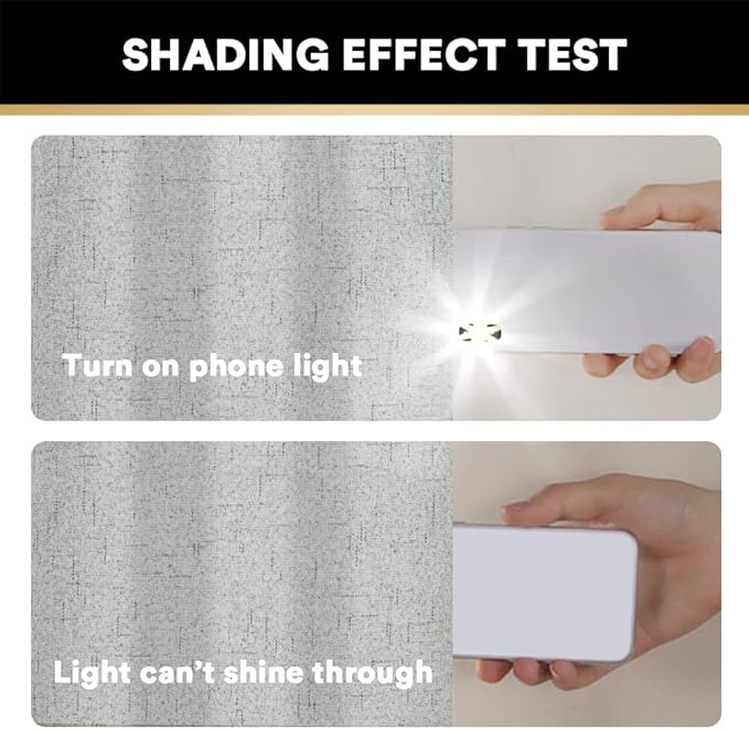 - 100% BLACKOUT CURTAINS: These completely blackout lined curtain panels are thick, durable, and long lasting, definitely can block out 100% bright sunlight and UV ray, keeping room cooler against heat in summer and retaining the room warm in winter, block the wind and reduce the noise. Perfect drapery option for anyone seeking to turn day into night, take a nap, or keep sun glare off your TV