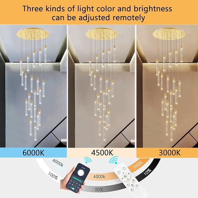 - Remote Dimmable Chandeliers - Crystal chandelier comes with LED dimmable bulbs and dimmer, you can control the light from 2700K warm light to 6000K white, and adjust the brightness from 5% to 100%, freely adjusted by remote controller any where (This chandelier has own dimmer and transformer, please do not use with any dimmer switch and dimming system !)