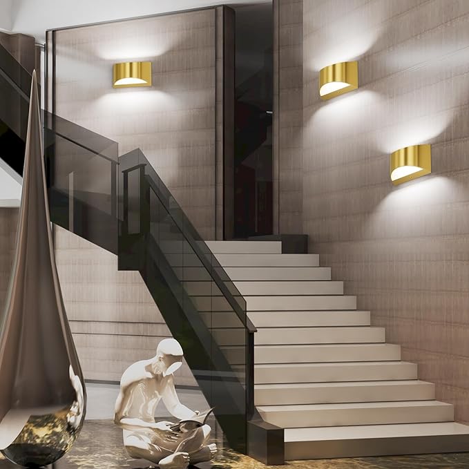 - Mid century design:The indoor gold wall sconces ideal for living room,kitchen,dining room,bedroom,stair and hallway.Made of high quality aluminum.High hardness,grind arenaceous qualitative feeling.