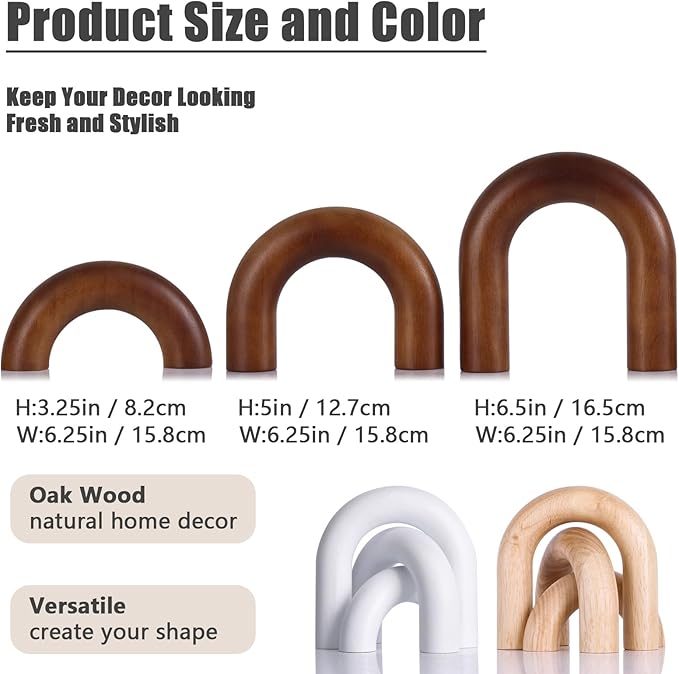 - OAK wooden arch decor are TIMELESS modern home decor accents. Keep them for years! Each accent piece displays unique wood grain and markings that occur naturally. this arch small shelf decor is made of wood material with a surface painting, smooth but strong, solid and reliable, not easy to deform or break, no burrs, beautiful for your tabletop, you can use it for a long time with confidence