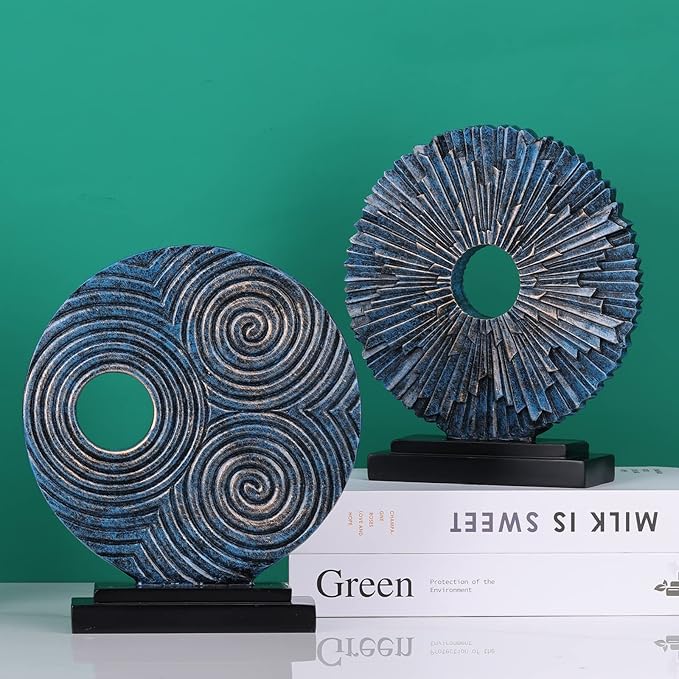 DOVDOV Blue Home Decor Sculpture, Unique Round line Statue, Modern Home Decor, Decorative Panel Statue for Living Room tv Cabinet, Office, Bedroom, Dining Table Center Blue Decor