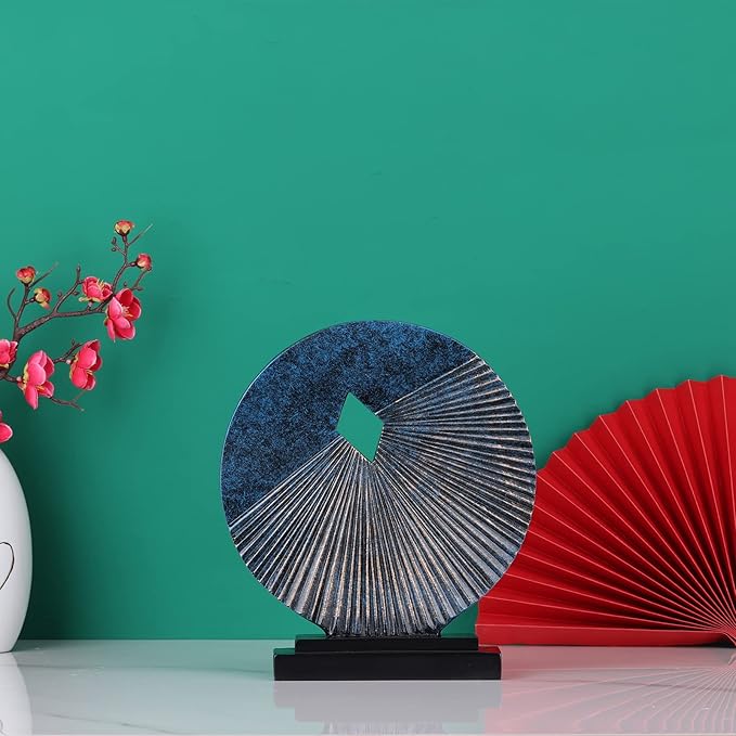 Blue home decor sculpture, unique round line statue, modern artist home decor, decorative panel statue for living room TV cabinet, coffee table, on the shelf, dining table center blue decoration