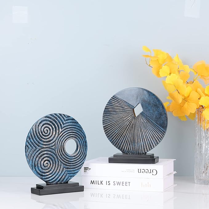 - Statue design: unique blue round statue with irregular lines, modern abstract design on the table or shelf is very eye-catching, elegant white, blue, black color scheme hand-carved lines stylish and elegant, suitable for a variety of home decorating style, add a few charm to your home.