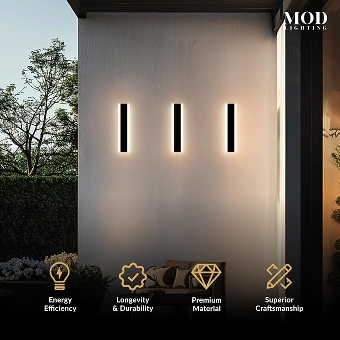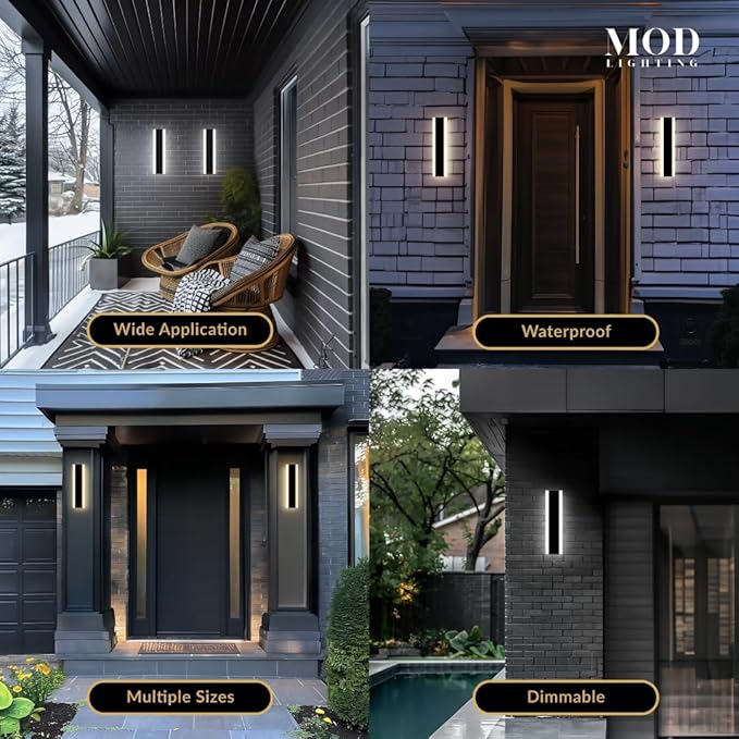 - ๐ช๐ถ๐ฑ๐ฒ ๐๐ฝ๐ฝ๐น๐ถ๐ฐ๐ฎ๐๐ถ๐ผ๐ป: Long outdoor wall lights for House Front Door, Garage, Porch or Patio. Available in multiple sizes from 12 up to 94 inches can fit any space with the option to be synced to a single remote for convenience.