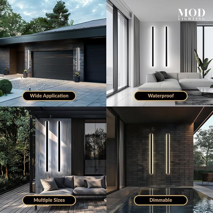 - ๐ช๐ถ๐ฑ๐ฒ ๐๐ฝ๐ฝ๐น๐ถ๐ฐ๐ฎ๐๐ถ๐ผ๐ป: Long outdoor wall lights for House Front Door, Garage, Porch or Patio. Available in multiple sizes from 12 up to 94 inches can fit any space with the option to be synced to a single remote for convenience.