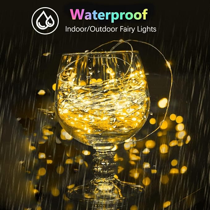 - Waterproof String Lights for Outdoor Use: These LED lights are designed with an IP44 waterproof rating, which is rainproof and allows them to illuminate well on rainy days outdoors, making them ideal decorative string lights for both indoors and outdoors. Note: The battery case is not waterproof; please keep it away from water.