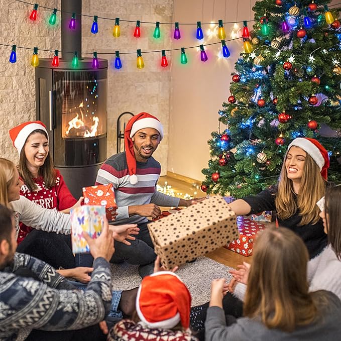 - Easy to Install: Led outdoor multicolor Christmas string lights have a clip on the side. Hanging Christmas string lights are suitable for outdoor courtyards, backyards, decks, bistros, cafes, pergolas, gardens, markets, weddings, Christmas and various occasions.