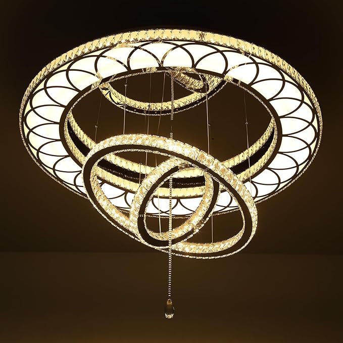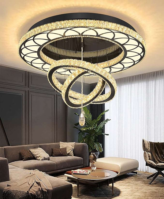 Flashing God Dia 40" Modern Chandelier for Living Room Crystal Bedroom Chandelier Light Fixtures LED Flush Mount Ceiling Light for Dining Room Foyer Hallway Dimmable 2700k 4500k 6000k