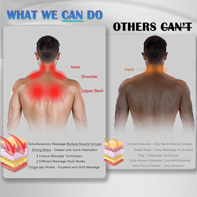 - 【MORE POWERFUL THAN 90% OF MASSAGERS】- If you're tired of underwhelming massagers, this is the one you should try. Experience a deep tissue massage designed for those seeking deeper muscle relaxation that regular weak massagers can't deliver. Find quicker relief from tense muscles in the neck, shoulder, and upper back
