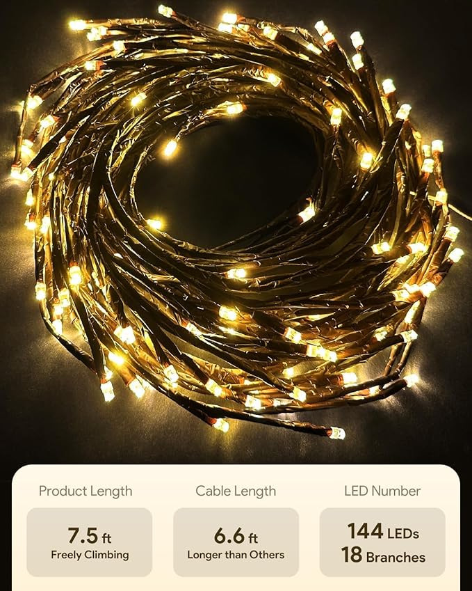- 【DIY FLEXIBLE & REALISTIC VINE】: All branches, stems and twigs are flexible and sturdy, Iron twig branch wires easy to shape into different shapes to fit your decorating needs. You can also add some fake flowers or ornaments for aesthetic, The shape and texture even look nice during the day when the lights are off.