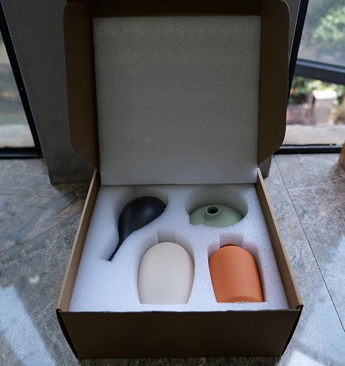 - Size:Beige Vase: 5.31''*2.95'',Black Vase: 6.30''*2.95'',Cyan Vase: 2.76''*3.94'',Orange Vase: 4.33''*3.15''. Please give a attention to the size of product,this vase set is more suitable for decorating in small spaces.