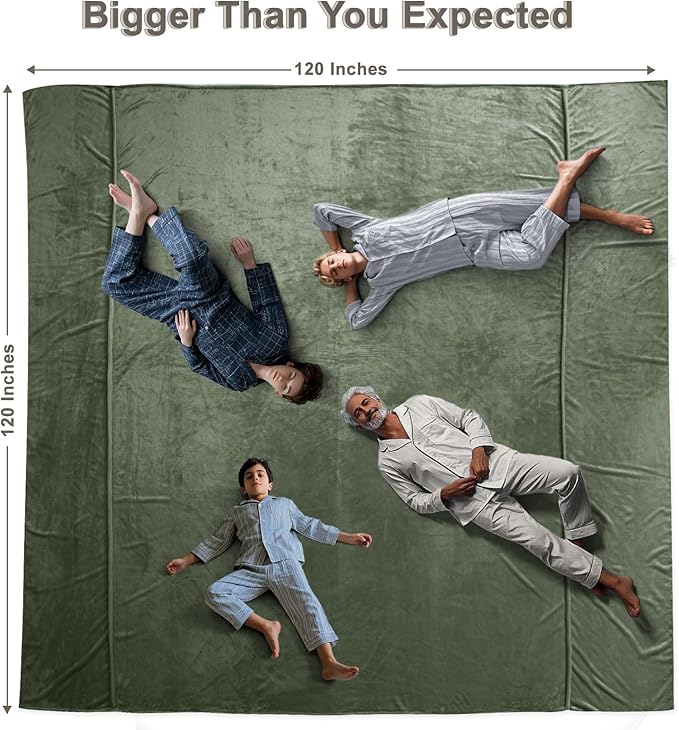 - Extra Large Size Blanket: Measured by 120"x 120", It's Bigger than you can imagine, Nearly double the size of a standard king-size blanket, which means it can surround you and your families with just one blanket.