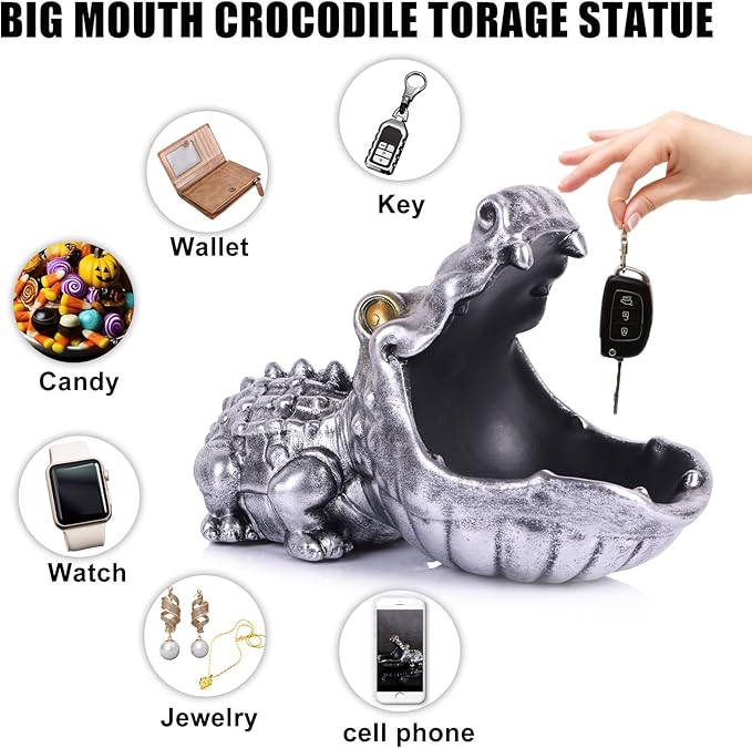 - Unique Alligator Design: This crocodile figurine boasts a whimsical and modern design that adds a playful yet elegant touch to your decor. The big mouth storage feature is both charming and functional, making it a standout piece.