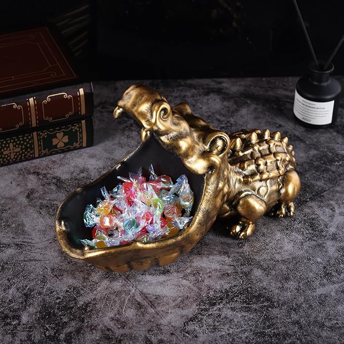 Alligator Statue Key Bowl, Fun Animal Statue Candy Dish for Entryway Decorative Bowl, Office Candy Dish, Big Mouth Sculpture Home Living Room Trinket Container Storage Box (Gold)
