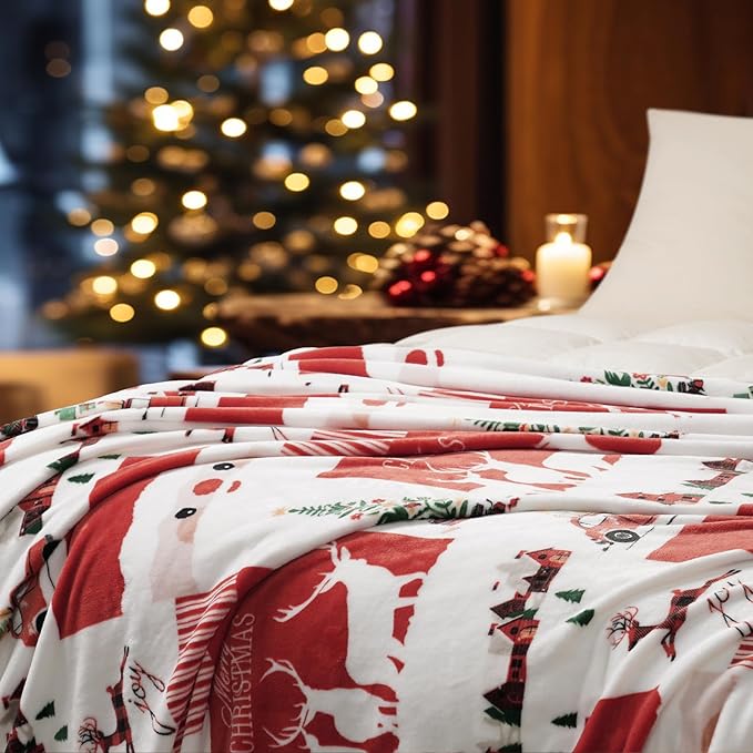 - Decorative Holiday Pattern : PHF flannel fleece blanket contains cute reindeer, snowflakes, Christmas trees and other Christmas elements. and gives a cozy holiday feeling to any space. Whether you are using it outdoors, such as picnicking, traveling, backpacking, or when you are napping or driving in the office, feeling extra festival joy and warmth.