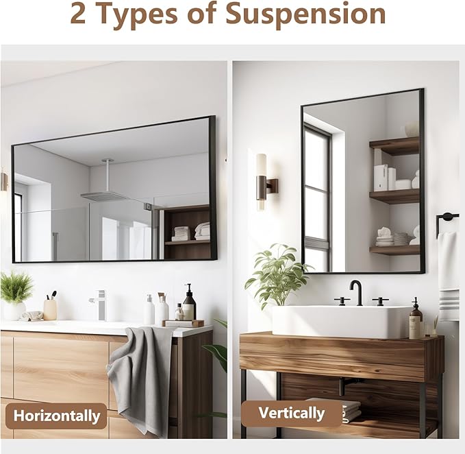 - Various Adaptations: Crisp right Angle with smooth rectangular lines, minimalist aesthetics, in line with modern, simple, European and other bathroom decoration style. Black and JENBELY black vanity mirrors are available to meet different aesthetic preferences.