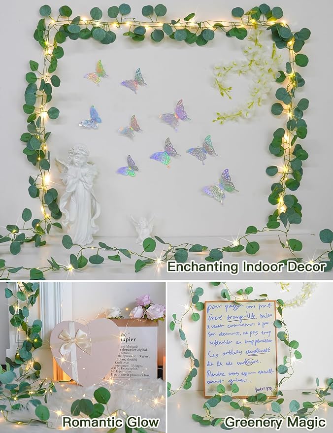 - 100 LED Warm Lights: Every vine string light is interwoven with 100 LED lights, infusing your surroundings with warm radiance. Much like planets adorning the night sky, these vine lights shine brilliantly in the dark, infusing the decoration with boundless hues of fantasy, as though you were right there.