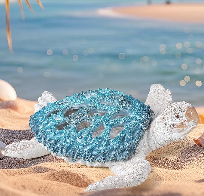 VVGIFTS Ocean Decor Sea Turtle Coral Reef Home Office Decor Sculpture Beach Coastal Tabletop Shelf Collection (Blue)