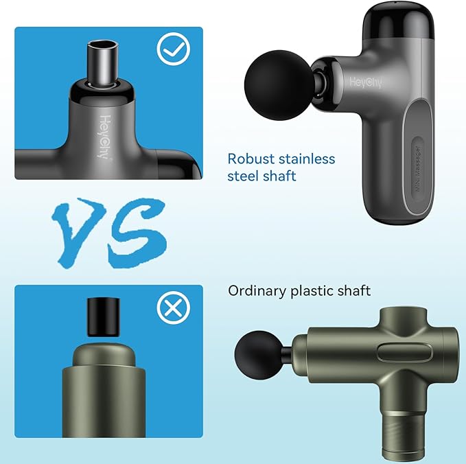 - 【Hot and Cold Therapy】HeyChy massager gun provides 1 heating and cooling massage head that can heat up to 113°F (45°C) or cool down to 50°F(10°C) for deeper muscle relaxation. You could freely choose 5 speeds and 4 attachments depending on the levels of your muscle soreness or pain by pressing the power button.