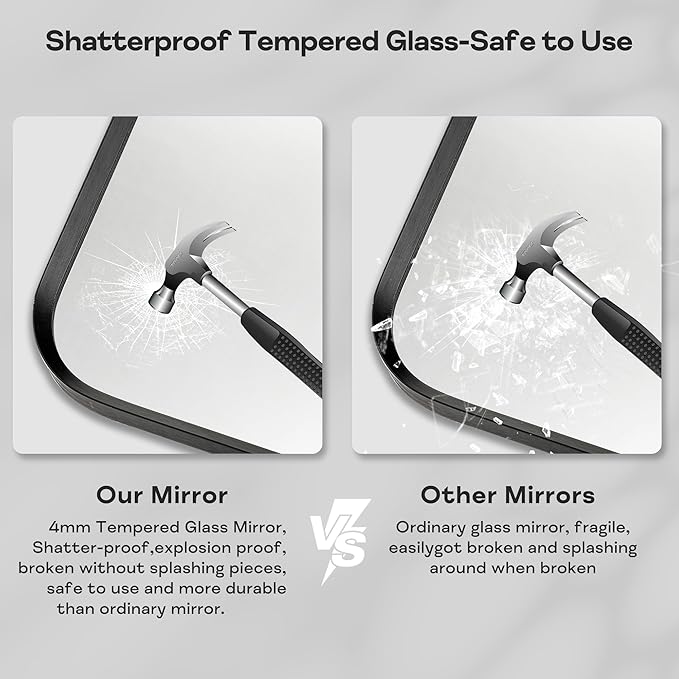 - Exceptional Quality: Our bathroom vanity mirror is made of 4MM tempered glass, more shatterproof and explosion-proof than ordinary mirrors, making it safer to use. The frame is made of advanced aluminum alloy frame, which has waterproof and rust proof properties and is durable