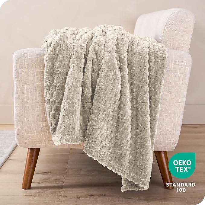 Bare Home Textured Fleece Blanket - Twin/Twin Extra Long - Ultra-Soft Lightweight for Bed, Sofa, and Couch - Luxury Microplush - Cozy Warm Blanket (Twin/Twin XL, Waffle Oyster)