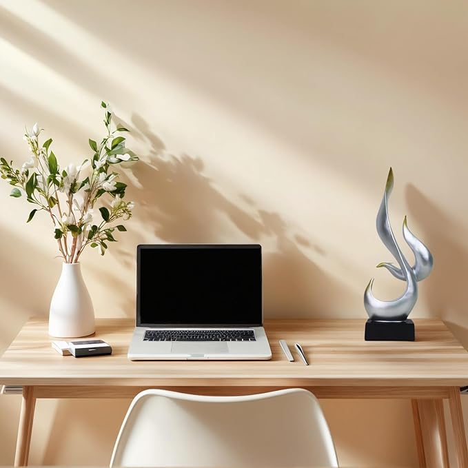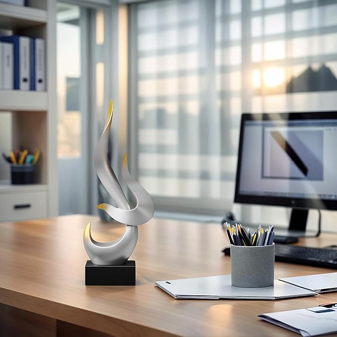 Dosker Flame Sculptures Home Decor, Abstract Statues Table Decor, Shelf Decor for Living Room Office, Kitchen (Silvery)