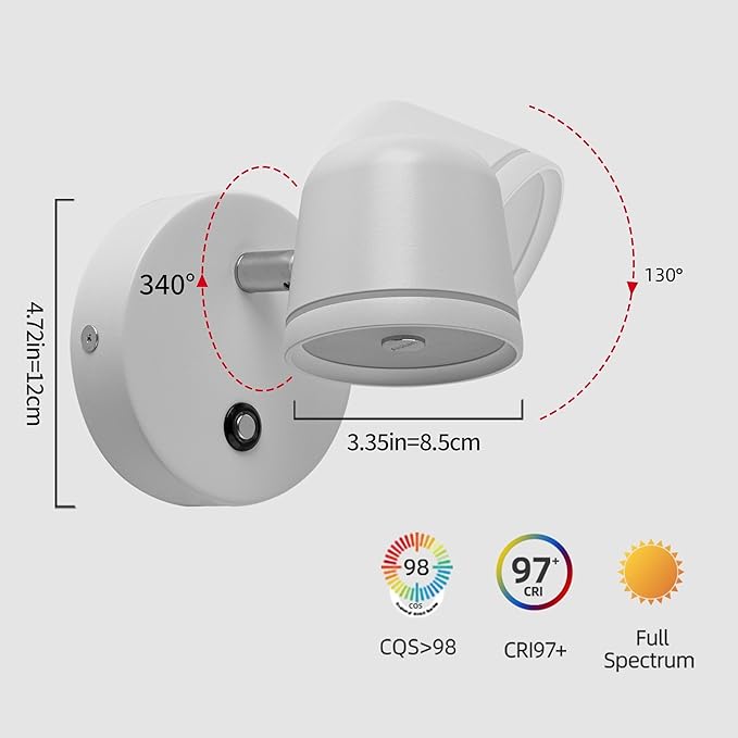 - Adjustable Scones Lighting: The sconces wall lighting head adjusts up and down by 130° and rotates 340° for flexible lighting. Direct light where you need it, enhancing functionality