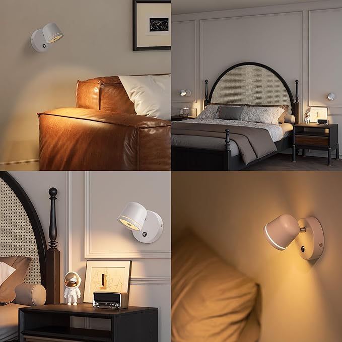 Aisilan Wall Sconces Set of Two with Switch Dimmable 7W Sconces Wall Lighting Modern White Bedroom Wall Mounted Light Adjustable Hard Wire Sconces for Bedside Living Room Study Room
