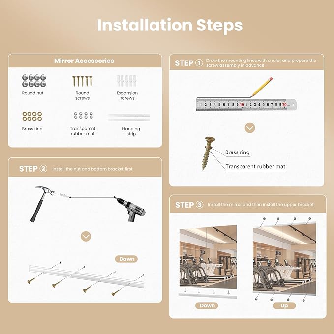 Gym Mirror, 63''x28'' 2PCS Mirrors for Home Gym Wall Large, Full Body Mirror for Yoga, Garage, Dance Studio, Anti-Rust, Tempered Glass,Frameless Rectangle Wall-Mounted Workout Mirrors