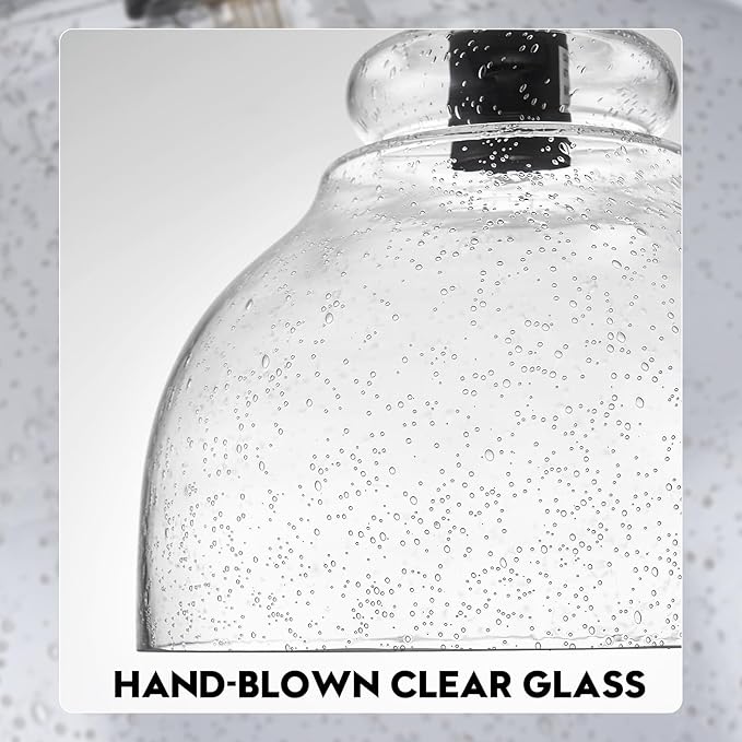 10" Seeded Glass Pendant Lights Kitchen Island Black Pendant Ceiling Light with Hand-Blown Clear Glass Over Dining Table Kitchen Sink Entryway Hallway, E26