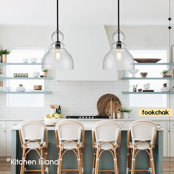 - 【Exquisite Seeded Glass】- Fookchak hand-blown glass pendant light for kitchen island is made from a skillful hand-blowing glass making process, and differs from the normal lampshade, the exquisite seeds make it outstanding and special. This black seedy glass pendant light fixture perfectly fits for island tables, dining tables, entryway, hallways, balcony and also exquisite lighting for business use at Cafe and restaurant.
