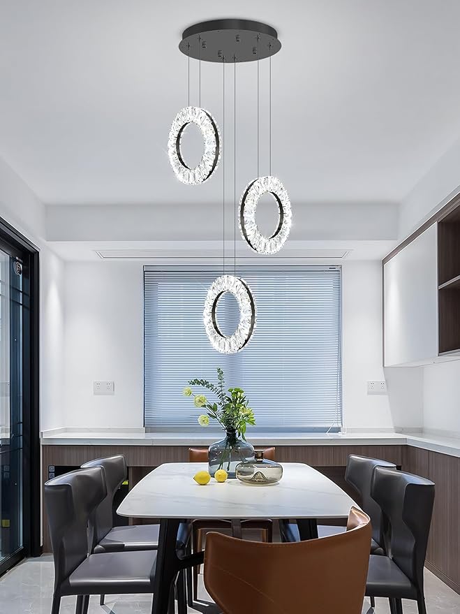 Pendant Lighting for Kitchen Island Mini Light Fixture Modern Led Crystal Pendant Light Black Round Chandelier for Dining Room Living Room Kitchen Bedroom Bar