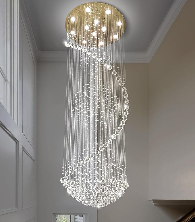98'' Crystal Chandelier High Ceiling Chandeliers for Staircaes Large Raindrop Chandeliers LED Dimmable Flush Mount Light Fixtures for Foyer Hallway Entryway LED Bulbs Included Gold