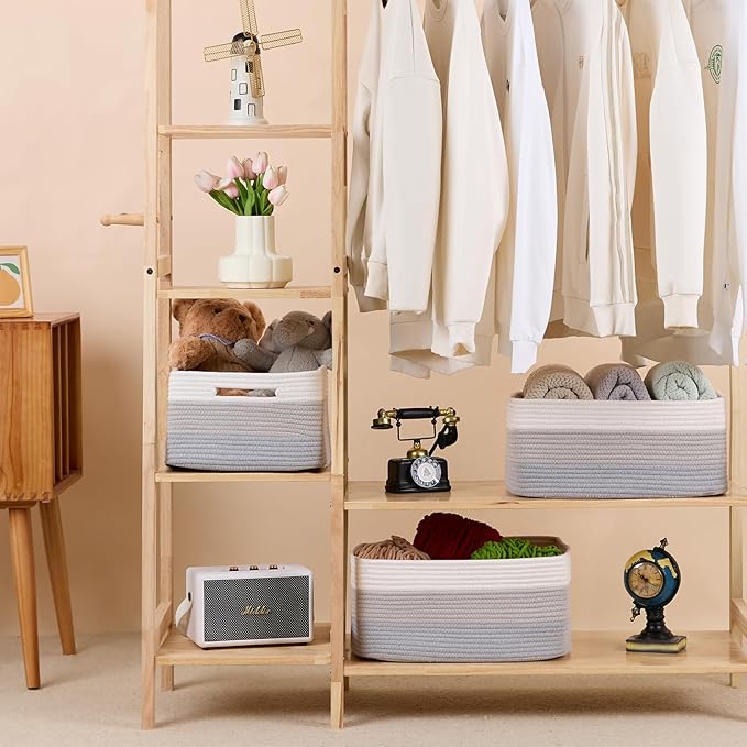 - [ Stylish Design ]: With a modern minimalist design, our woven rope baskets are a chic alternative to traditional rattan. They’re perfect for closets, changing table organizer, and cube shelves, adding warmth and texture to any room while tackling home clutter