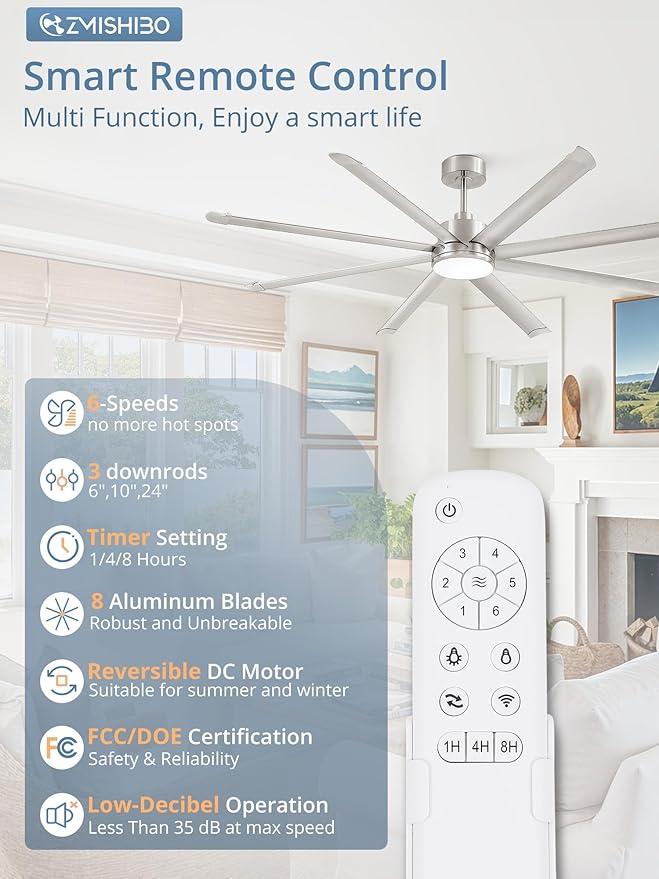 - Reversible DC Motor & 6-speed Remote Control: You can choose between comfortable wind, natural wind, or strong wind in seconds. Reversible dual-direction fan improves air circulation to keep you warm in winter and cool in summer