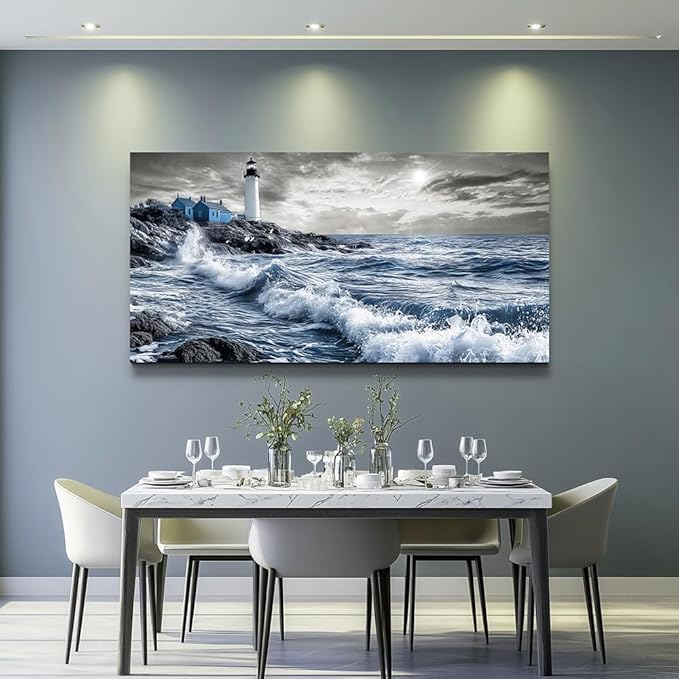 ZUITINGHUA Canvas Wall Art For Living Room Large Wall Decor For Office Bedroom Decorations Wave Landscape Pictures Watch Tower Painting Artwork Room Wall Mural Aesthetic Home Decor 30x60 In