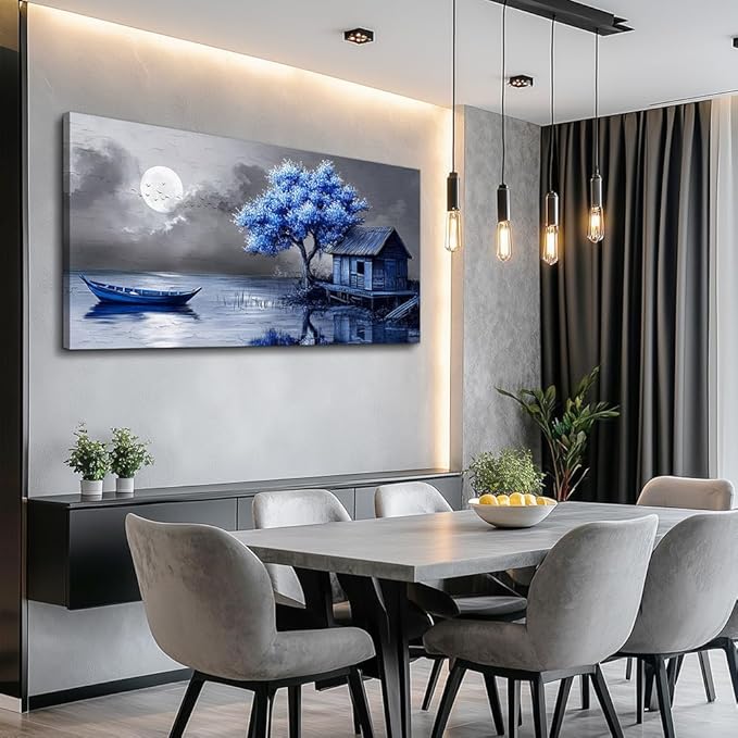 - Gallery-Ready Size & Design:20x40 inches (50x100 cm) Blue Boat on the Lake framed canvas. Solid wood frame with waterproof finish creates a natural focal point for living rooms or offices.