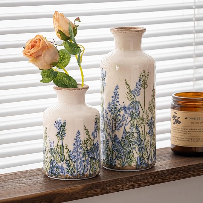 - 【Vintage Rustic Farmhouse Style】 Designed with timeless vintage vase aesthetics and rustic farmhouse vase style, this vase set complements a wide range of interiors. Perfect as chinoiserie decor, floral vases, or vintage home decor, they enhance spaces such as the living room, bedroom, or kitchen, while adding character to shelf decor or farmhouse decor.