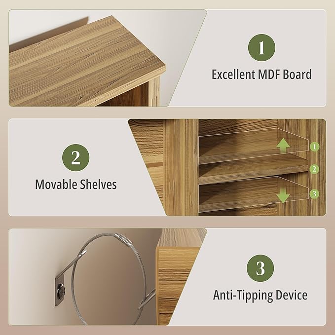 - Secure & Stable Foundation: Includes two anti-tip kits for reinforced wall anchoring, providing extra security and accident prevention. The widened base and low center of gravity further enhance stability, ideal for families with little ones or pets