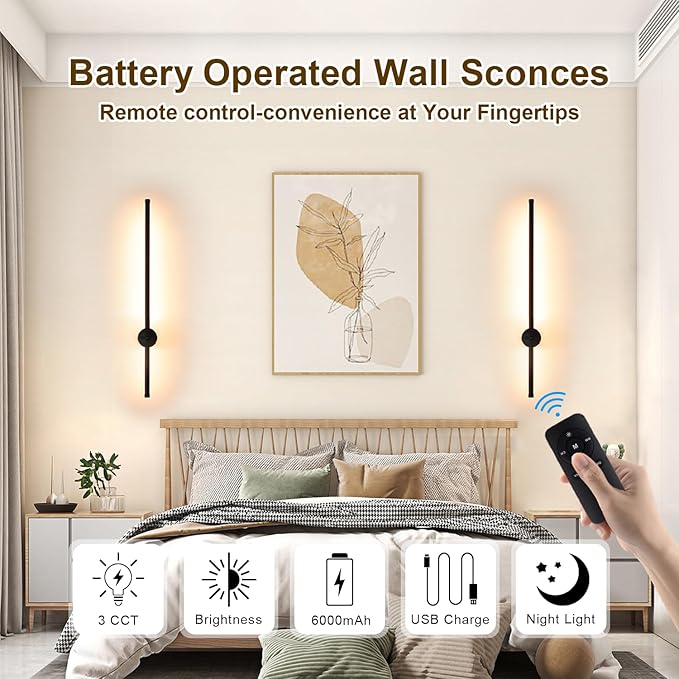 - 【Battery Operated Wall Sconces of Two】: This wireless wall sconce is designed with battery powered. No wiring or professional electrician is required for installation. It is a new and practical lighting solution that can be installed in every room of your home without being restricted by power supply. It can also be used as emergency lighting during power outages.