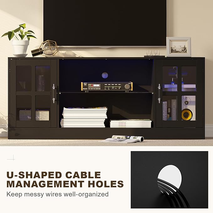 - LED Lights: The TV stand with LED light features 7 vibrant colors and 3 dynamic modes, adjustable brightness, single color, gradient, and flash modes for a customizable lighting experience